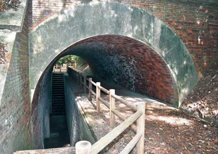 日清、日露戦争と戦艦による戦闘が主だった明治期は、東京湾要塞をはじめ、国内に14ヵ所の要塞が築かれた。淡路島に司令部を置いた由良要塞は紀淡海峡防備を目的に国内4番目に設けられ、18砲台と陣地にあたる7つの堡塁が築かれた。和歌山側は1889年に起工した友ヶ島第一砲台を皮切りに深山、男良谷、加太、田倉崎に砲台を配備。開発などでなくなった所はあるが、多くは今も現存し、建築史家の西山修司さんは「大規模な地下遺構があり、沿岸部を含め総合的に砲台跡が残る所は珍しい。残存状況が良く、深山などはトンネルのアーチやレンガ造りにモダンな美しさがあり、建造物として一級です」とみる。