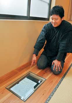 今年4月からペンキ塗りや床板の張り替えを進め、9月に完成。川の上に突き出た部屋の床の一部を強化ガラスにし、床から川面が見えるようにした。また、宿泊者に商店街で使える食事券を渡し、飲食店を訪れる地元の人と旅行者の交流を促す。土産用に紀州漆器の箸を販売し、近隣店で使うと割り引きが受けられるサービスも計画する。「川は潮の干満で海と川の魚を両方見ることができます。交流を広げ、地域に開かれた宿にします」と板東さん。