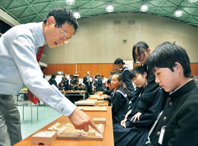神﨑八段は、同校の神﨑信彦校長の弟。信彦校長は教諭として赴任していた20年前も50周年事業として神﨑八段(当時は六段)を招いており、今回も夏休み前から駒の動かし方やルールを生徒たちに教えていた。