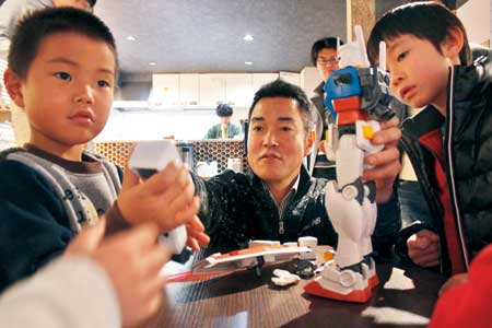 初日の9日は参加者が、腕と武器、頭と胴体、足の3グループに分かれ、37・5㌢のガンダムを作り上げた。子どもと参加した男性は「息子と妖怪ウォッチのプラモデルを作ったことがある。一緒にガンプラを作れればうれしい」と目を輝かせていた。