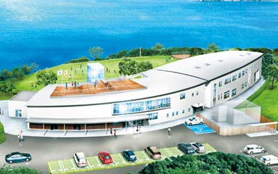 自然の中で生涯学習活動に取り組める青少年国際交流センターが8月、和歌山市加太の少年自然の家跡にオープンする。紀伊水道を見渡せる加太の山頂に、流線型の建物を配置。海抜約50㍍あり、132人収容の宿泊棟は、どの部屋もオーシャンビューになるよう考慮した。