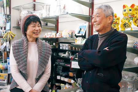 幸一さんが店を継いだ91年ごろは、郊外の大型店が安価な商品を大量に供給し始め、商店街全体の客数は伸び悩んでいた。幸一さんは「対抗策として割り引き販売を導入しました。開店前から客が並び、1日に200~300人が来店することもありました。大型店に資本力で負けても商売の歴史と心意気では負けない」。老舗専門店としての意地が心を支えた。