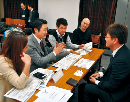 今回は、行政施策を学び、それぞれビジネスチャンスに生かそうと、労働政策、子育て、防災など9課の職員を招き、各課が設けたブースを約40人の民間事業者らが巡った。農業関連を扱う経営支援課のブースでは、県職員が農家の担い手不足を紹介すると、日本語学校の経営者から「留学生の中には日本で農業を学びたい学生がいる」との声が。県職員も「マーケットが世界に広がっており、農業大学校に留学生枠を設けるのも一つ」と感心していた。