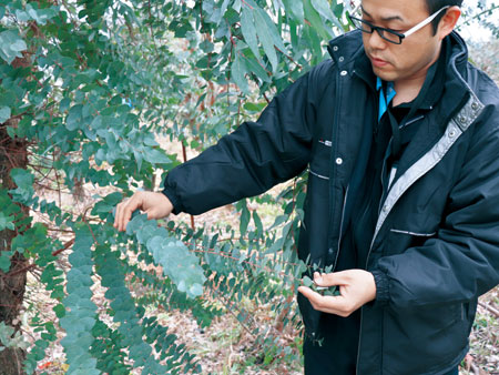 現在、栽培に取り組んでいるのは、60~75歳の農家18軒。このうちの一人、山田隆英さんは「収穫・出荷のタイミングを自分でコントロールできるのが利点」と語る。野菜や果物は育てば収穫しなければならないが、ユーカリは収穫可能な時期が長く、みかん、かきなど他の農作物の出荷に忙しい時期は放っておいても良い。