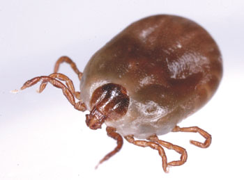直径約0・5㌢、吸血後は約3倍の1・5㌢に身体が膨らむマダニ。森林や草むらに生息するが、タヌキやイタチなど野生動物に付いて移動し、住宅街の草地で見つかることもある。西日本を中心に日本紅斑(こうはん)熱や重症熱性血小板減少症候群(SFTS)といったマダニによる感染症が報告されている。全国の紅斑熱患者は2013年の175人から昨年は337人、SFTSは48人から90人に。県内でも紅斑熱が18人から51人、SFTSも0人から3人に増えた。