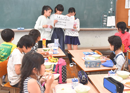 委員で6年の南出心優(みゆう)さんは「他の学年の子とふれあえ、食の知識が増えるのがやりがいです」とにっこり。久保教諭は「給食から旬を感じ取り、地元の農家や調理してくれる人に、感謝の気持ちを持つきっかけになれば」と願っている。