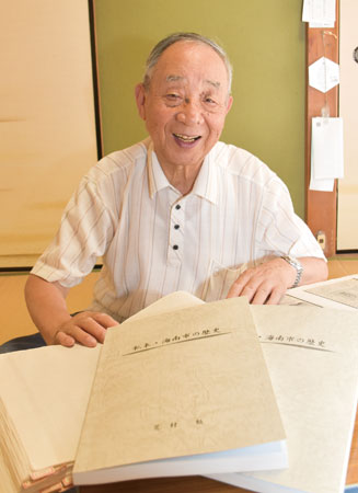 海南市の古代~現代史を一冊にまとめた『私本・海南市の歴史』を6月、和歌山県観光ガイド専門員の紀州語り部、芝村勉さん(85)が自費出版した。半世紀近くにわたり新聞や市報から切り抜いてきた記事をもとに編集。「自分の生まれた場所の歴史を知るのは大切。ふるさとを学ぶ手がかりに」とほほえむ。