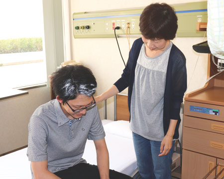 男性を支える妻役の辻公美子看護師は「気持ちを表情で表すのが難しいです。自分が同じ立場になったら、と想像しながら演じたい」と話す。