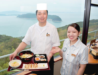 ☆…鯛ラーメンに鯛餃子、鯛チャーハン!? 特製メニューで名産の鯛をアピールしようと、休暇村紀州加太(和歌山市深山)に9月3日、鯛尽くしのランチセットが登場した。