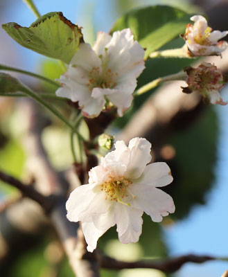 ❀…げんきの森倶楽部の岡田和久さんによると、サクラのつぼみは夏にはできているが、葉から花を咲かせない信号が送られている。今年のように台風で葉が落ちてなくなると信号が途絶え、開花し始めるそう。来年の春は少し花が少なめかも?