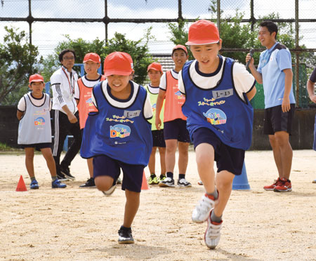 最後に30㍍走を測ると、ほとんどの児童が記録を伸ばした。0・6秒縮めた5年の尾崎蕾さんは「自分で考えられ、楽しかった。走る前に肩をゆらして身体を慣らすと効果があると知った」。5・3秒から4・9秒になった6年の福永煌(ごう)くんは「教わったことを陸上大会で生かしたい」と声を弾ませた。