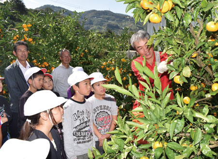 小上心菜さんは「小さい方がおいしいと聞き、びっくりした」、西岡旺祐くんは「他のみかんを傷付けないよう気をつけて取りました。いろんな種類があることを知れました」と話していた。