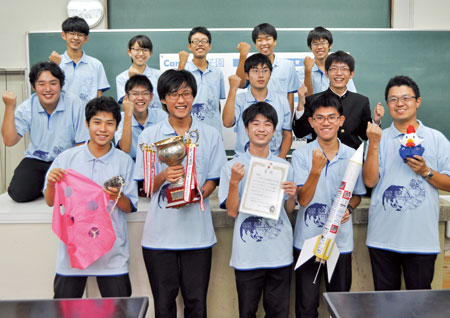 写真=念願の日本一に喜ぶ科学部のメンバー