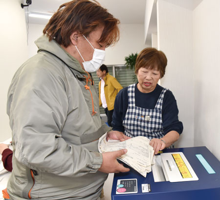 スタッフはうつ病やパニック障害などを抱える約20人。初日で既に4社から段ボール箱70箱分の依頼を受け、ステープラーの針やクリップを取り除き、業務用大型シュレッダーにかける作業に追われていた(写真)。西林郁裕代表は「練習を始めた2週間前から全員休まず来てくれています。雇用が広がるきっかけになれば」と話していた。