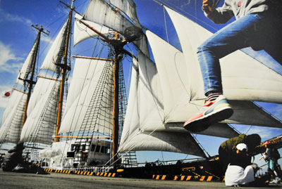 国内唯一の航海訓練帆船「みらいへ」は、和歌山市出身で明治時代に活躍した外務大臣、陸奥宗光が青年期に帆船で航海したことを追体験しようと、「陸奥宗光 外務大臣」の功績を教育に活かす実行委が招いた。写真、絵画、俳句を募り、約100点の応募があった。