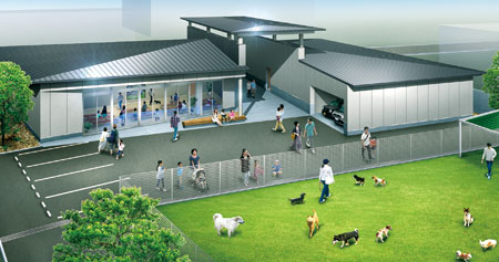 ドッグラン、愛護教室や譲渡講習会を行う多目的室を備え、動物とふれあえるイベントなどを開き、命の大切さを伝えていく。