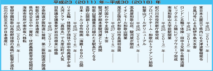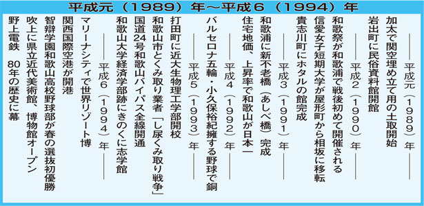 世界リゾート博、丸正倒産、紀伊半島大水害と様々なことがあった平成の30年間。ラストイヤーにあたり、これらの出来事を振り返り、読者の思い出を紹介します。四コマ漫画「和歌山さんちのハッサクくん」で当時の世相もお楽しみください。