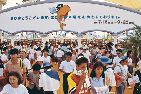 「21世紀のリゾート体験」をテーマに平成6年7〜9月、世界リゾート博がマリーナシティで行われた。多彩なパビリオンや充実した夜間イベントが受け、72日間で県内外から300万人を集めた。