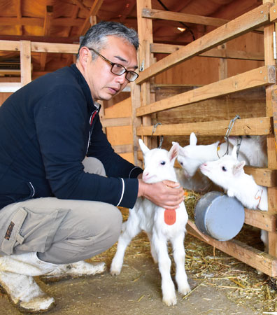 写真=赤ちゃんヤギを世話する今府さん