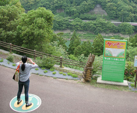 みやまの里の藤棚から車で約2分のところに、もう一つ、〝日本一〟を自称するポイントがある。日高川町初湯川のグリーンパーク椿山内、やまびこが日本一きれいに返ってくるとされる「ヤッホーポイント」だ。
