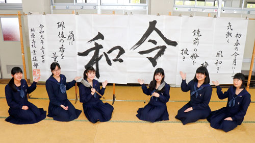 明治、大正、昭和、平成、そして令和──。和歌山市吹上の桐蔭高校は和歌山中学校時代から数え、5つめの元号に突入しました。令和第1号のニュース和歌山を飾ってくれたのは、書道部の2・3年生6人の文字です。