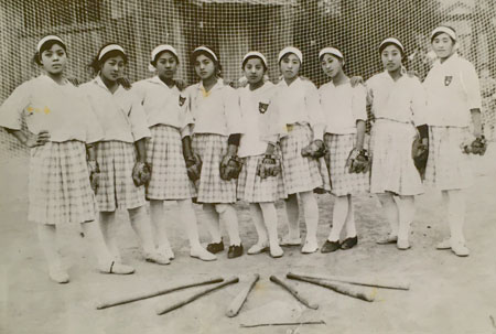 この経験を柳さんが90歳だった97年、手記にまとめ桐蔭高へ寄贈。今春、約20年ぶりに手記と写真が見つかり、同館で保管することになった。江川さんは「初めは何人で野球をするのかも分からなかったそう。結成時の写真はスカートですが、全国優勝の写真はズボンに。全て手縫いで作ったと書かれています」。