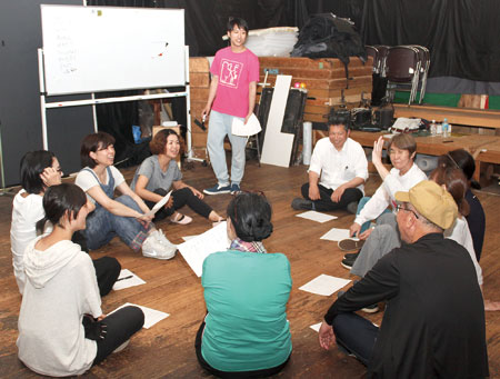 地元の人たちにもっと演劇にふれてもらいたいと始めたワークショップ。パントマイムや殺陣(たて)、即興など毎回内容を変え、最後に全員出演の芝居を作っている。学生や主婦、演劇経験者など約10人が参加する。