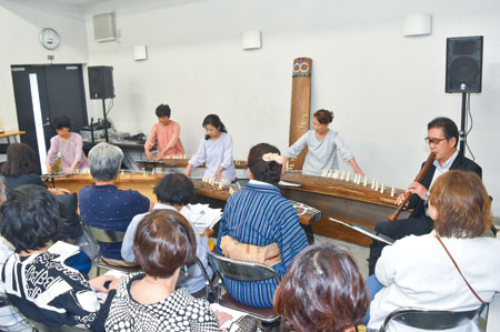 写真=初企画の講演会でも戯曲の一部を箏で演奏した