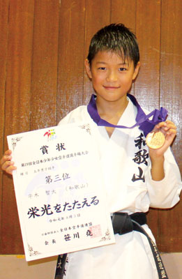 8月3日に東京で行われた全日本少年少女空手道選手権大会で、和歌山市の常心館道場、平木智大選手(小倉小)が小5男子組手の部で3位に入った。「5年連続の全国大会で、初めて入賞できてうれしい」と笑う。