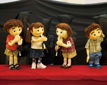 発達障害児やその親、教師らに聞き取りし、約5年かけて完成させた作品。音に過敏で、リコーダーの音が苦手だったり、味覚過敏で周りからは単なる好き嫌いやわがままと受け取られたりなど、具体例を盛り込む。岡本光代副代表は「人の痛み、悲しみだけでなく、分かり合う喜びを感じてほしい。病気や障害の有無にかかわらず、支え合うことの大切さに気づける、そんな温かみのある人形劇です」と胸を張る。