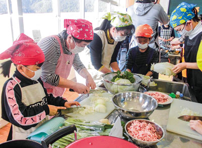 写真=地域の方々と、地元食材を使った弁当づくりで交流(きのくにコミュニティスクール)