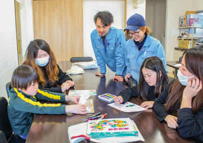 社員たちは子どもたちが退屈しないようにと、親の仕事を見学し、絵や粘土で表現するミッションを出した。完成した作品は社員の目を楽しませている。自身も2人の子を持つ社員の久保美貴さんは「ものづくりの会社なので、ミッションは手先を使って集中できるものにした。親の仕事を理解する良い機会にしていければ」と話している。