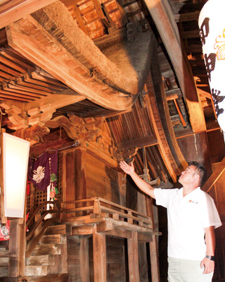 しかし、2年前の台風で、老朽化した覆屋の屋根や壁が壊れ、本殿がむき出しになった。組合が市に相談したところ、歴史的風致維持向上計画の対象となり、市と国から工事費の3分の2が支給され、修復に至った。