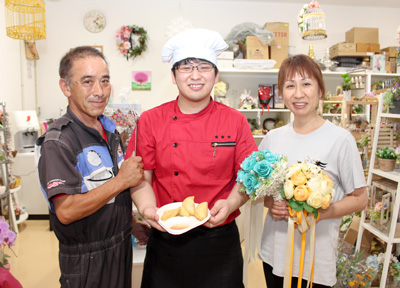 写真=三者三様で出店し、笑顔で客を出迎える中北さん親子