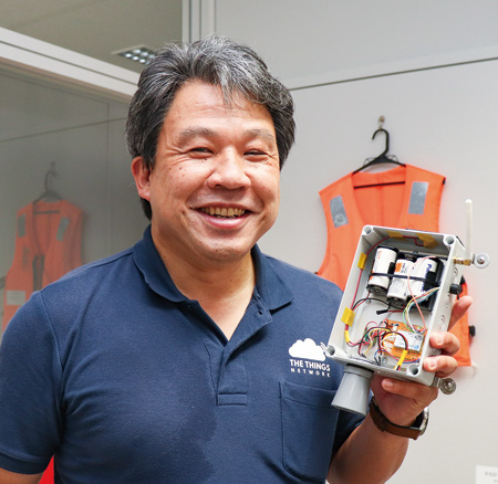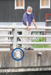 今年6月には和歌山市の西山東地区連合自治会と協力し、和田川と支流の前代川など5ヵ所に設けた。長年、水害に悩まされてきた西山東地区だが、和田川の水位計は地区内になく、隣りの岡崎地区に1つあるだけ。宮脇茂連合自治会長は「これまでは自分たちで川まで行き、水位を目視しなければならなかったが、離れた場所にいながら数字で分かるようになる。だれもがデータを知れるのもありがたい」と喜ぶ。