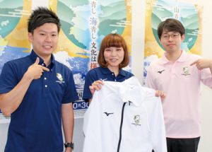 3種類のポロシャツ(2500円~)とウインドブレーカー、フリースジャケット(各3100円)。県担当者は「ポロシャツは涼しい素材でクールビズにピッタリ。一緒に文化祭を盛り上げてほしい」と話している。