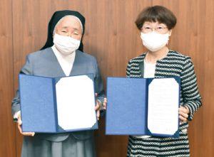 写真=9月25日の調印式で、森田校長(左)と八島学部長
