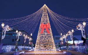 テーマは「ハッピーホリデー」。クリスマスを迎えるまでのワクワク感や、楽しい気分を感じられるよう、クリスマスツリーやプレゼントの箱の形をしたオブジェなどを設置した。また、雪に見立てた光を降らせ、幻想的な冬のヨーロッパの街並みを表現している。