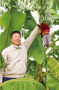 「紀の川市をバナナの産地に」と夢を抱いた西野さんは、ハウスではなく、コストのかからない露地栽培を選び、寒さに強い品種、アイスクリームバナナに行き着いた。「調理用だが、熟すとバニラ風味でアイスのような口どけ。早く生産技術を確立した人が勝つなら、今挑戦しなければ」