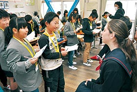 小川凌くんは「初めてオーストラリア人と会ってうれしかった。英語が通じて良かった」、前田宙星(みちとし)くんは「オーストラリアに行ってカンガルーを見てみたい」と笑顔。同小の乾佳子校長は「生の英語に直接触れられる貴重な機会になりました。習った英語で交流し、自信や好奇心につながったようです」と目を細めていた。