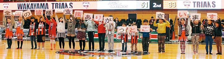 活動停止から一転、ファンらの支援で今季の存続が決まったNBL(ナショナルバスケットボールリーグ)の和歌山トライアンズ。新生チームのホーム初戦が1月31日に和歌山市梅原のノーリツアリーナで行われ、観客685人が熱い声援を送りながら、選手と一緒に戦った。