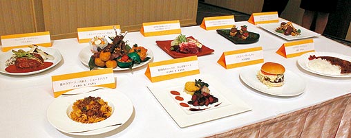 今年は昨年の60店を上回る84店が参加。イタリアン、カレー、フレンチ、和食と多彩な料理で腕をふるう。1月23日に開かれた試食会では、シカ肉を使ったバーガーやイノシシ肉をソースに入れたパスタ、ローストして特製ソースをかけたシカ肉など、8店が独自のメニューを披露した(写真)。
