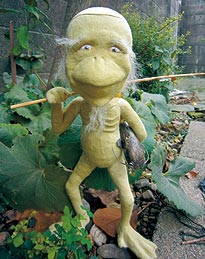 なまずやウクレレ、野球用のグローブと人形が手にする小物も全て手作りで、服もミシンで縫う。表情にもこだわっており、鏡を見て、顔の筋肉の動きを細かくチェックしながら作る。「そのせいか、『カッパは作者に似てる』と言われますね(笑)。リアルすぎると怖いので、ほほえんでもらえるような温かい感じの表情を心掛けています」