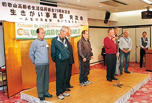 ボランティアの需要が高まるのを見据え、高齢者の生きがいづくりに取り組む和歌山高齢者生活協同組合は3月、00年度から続ける生活支援ボランティア〝お助け隊〟の交流会を初めて開いた。会員間の情報共有と新たな展開につなげようと、県内各地で活躍する約60人が集まり、それぞれの活動を発表した。