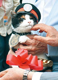 和歌山電鉄貴志川線の社長代理で貴志駅のウルトラ駅長たまが4月29日、16回目の誕生日を迎え、同駅での祝いの式典に国内外から300人が駆けつけた。小嶋光信社長は「皆さんの温かい支援で、人間でいう80歳を迎えることができた。これからも大いに健康に気をつけ、『招き猫』ぶりを発揮し続けてほしい」と祝いの言葉を贈った。
