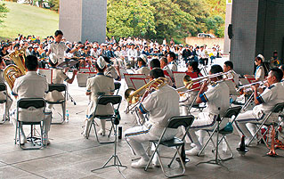 和歌山県警察音楽隊による恒例のたそがれコンサートが6月12日に開かれ、和歌山県立近代美術館前広場(和歌山市吹上)は約600人の観客でにぎわった。