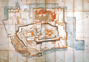 写真=200年前の城を描いた「和歌山御城内惣御絵図」も展示