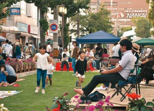 南海和歌山市駅前通りの一部を歩行者天国にし、芝生エリアやオープンカフェを設け、憩いの場をつくる社会実験「市駅〝グリーングリーン〟プロジェクト」が9月12日と9月13日に初めて実施され、家族連れや若者らが食事や買い物を楽しんだ。