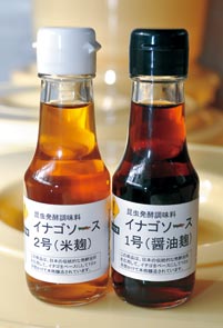 見た目は茶色く透き通ったさらさらの液体で、臭みもない。しょう油こうじを使った「イナゴソース1号」、米こうじの「2号」の2種類あり、「1号はしょう油のように、2号は塩ダレのように使える。辛みが強く、そのまま味わうものではないので、合うレシピを開発して教えてほしい」と期待する。