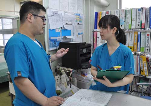 看護師の福本弘美さん(28)は「チームワークが良く、先輩が子どもの発熱や育児のために休暇をとっても互いにフォローできる体制ができています。女性にとって安心できる職場です」、介護士の伊藤海(かい)さん(21)は「定時になれば上司も積極的に帰るよう言ってくれる。家族と過ごす時間を確保できています」と笑顔を見せている。